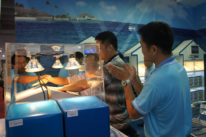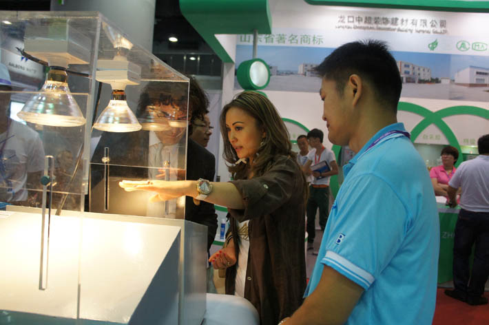 展會(huì)現(xiàn)場(chǎng)客戶體驗(yàn)區(qū)里,幾個(gè)新款獨(dú)特的,模擬太陽光照射在金屬屋頂,混凝土屋面、建筑外墻的產(chǎn)品樣板演示道具,吸引了眾多觀眾的眼球。在我司工作人員的熱情接待下,客戶了解并感受了產(chǎn)品的測(cè)試效果。從現(xiàn)場(chǎng)的精密測(cè)溫儀器和客戶的親身感受來看,涂刷過我司隔熱涂料的樣板與涂刷普通涂料的樣板溫差最高可達(dá)15度,形成鮮明對(duì)比,產(chǎn)品效果立竿見影,得到了業(yè)界的高度認(rèn)可。很多觀眾在參觀了我司展位后都對(duì)我司隔熱涂料系列產(chǎn)品的涂裝效果,產(chǎn)品性能,質(zhì)量贊不絕口。
