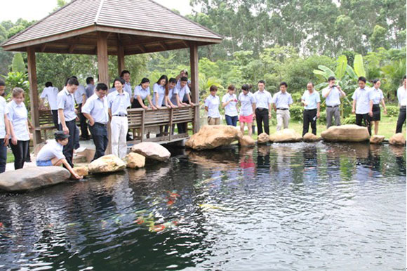 進入保賜利鰲頭廠區,映入他們眼簾的婉如美麗的度假村,綠樹成蔭,芳草叢生,小橋流水,處處生機怏然。生產區里整潔寧靜,生產流程有條不紊。廠房的設置,產品的設計,每個細微之處的周全考慮,以及其強勁的研發實力無不讓他們一再驚嘆。
