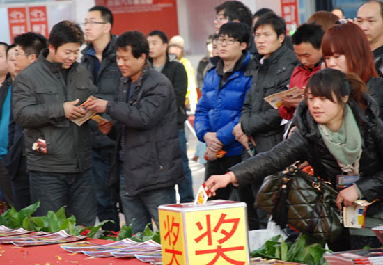 活動現場,保賜利不僅通過專場秀展示著品牌實力,也在舞臺側面通過保賜利專業展柜陳列的樣品和現場觀眾進行面對面的交流,同時,在為每位觀眾派發保賜利“龍年精品巨獻特刊”時,也為每位觀眾派贈了一張本次活動的抽獎券。在保賜利專場秀抽獎活動第一天第一場,便有著人氣爆棚之勢,現場參與抽獎觀眾達到800多人次,并由保賜利市場總監劉利明先生為參與者抽出了10名中獎者,并現場為他們派發了價值588元的保賜利“車窗*車體二合一撥水鍍膜劑套裝”。