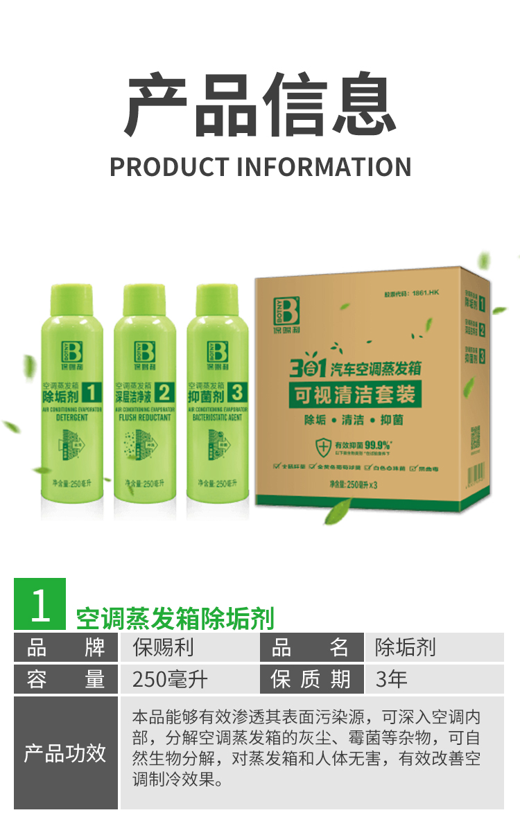 保賜利3合1汽車空調蒸發箱可視清潔套裝,有效抑菌99.9%,讓你看得見健康!