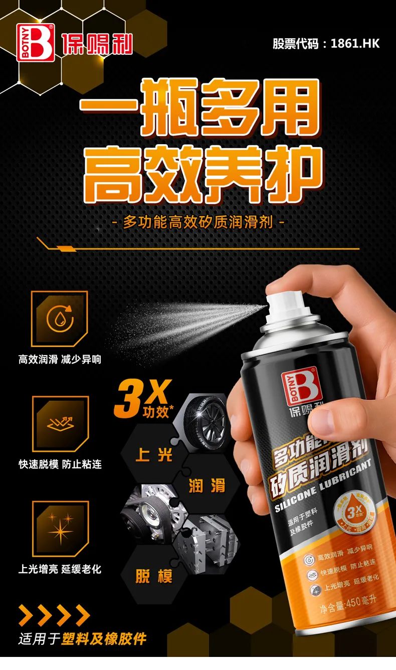 潤滑、脫模、上光,三效合一,保賜利多功能高效矽質潤滑劑讓物件養護更輕松!