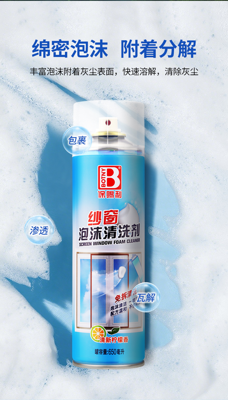20年家政阿姨用了都說好!保賜利紗窗泡沫清洗劑,免拆免水洗,污垢自動掉下來!