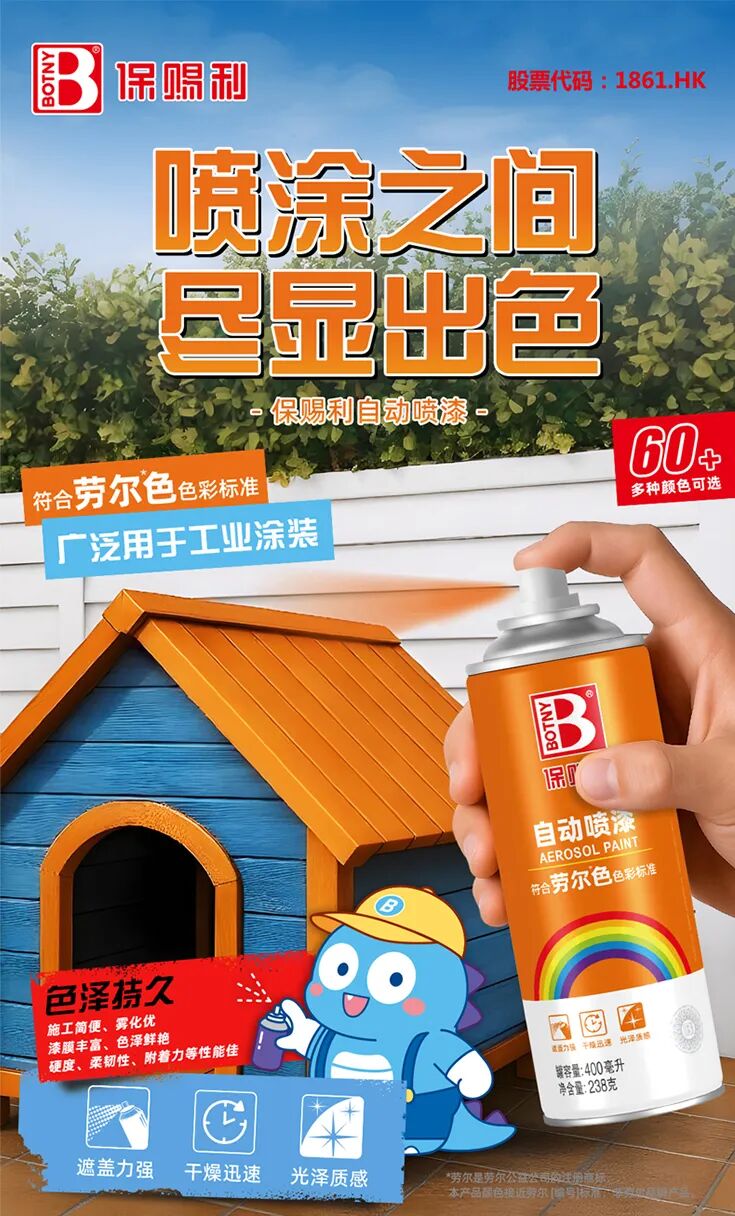 保賜利自動噴漆,一款專注多領域應用的高效涂裝材料,憑借豐富的顏色選擇、環保安全、強力附著、優異耐候性等特點,廣泛應用于汽車、工業、電子、建筑、家居等多個行業,深得消費者的喜愛。
