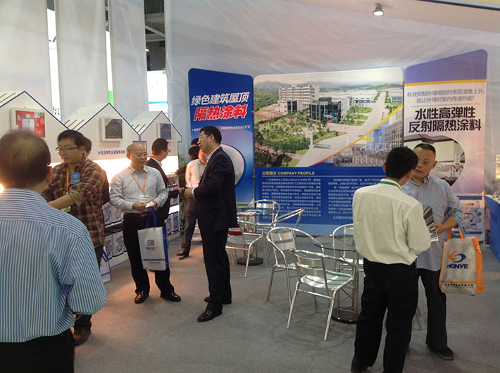 展覽期間,展臺內最為火爆的場面在于客戶體驗區,眾多的參觀觀眾在我司工作人員熱情接待下,逐一了解到我司最新環保科技型產品——建筑節能反射隔熱涂料,并踴躍參與我司反射隔熱涂料效果展示測試。從現場測試情況來看,涂刷過我司反射隔熱涂料的樣板在與涂刷普通涂料的樣板對比中形成鮮明的反差,現場溫度測試儀顯示,涂刷過我司隔熱涂料展板與普通展板溫差達到15度,現場立竿見影的效果一度讓展臺人氣爆棚,并引起眾多客戶極濃興趣。