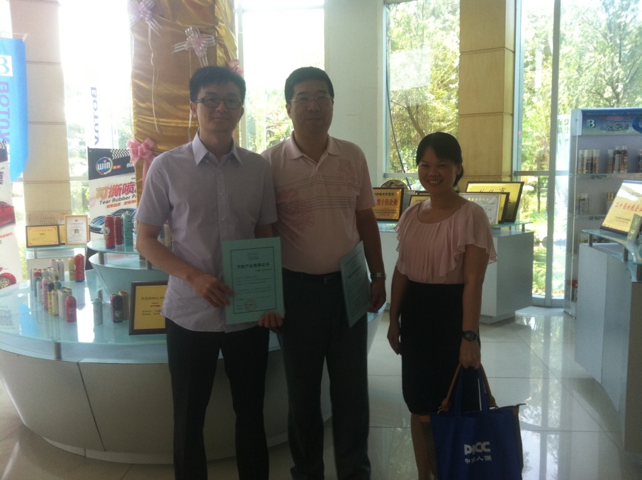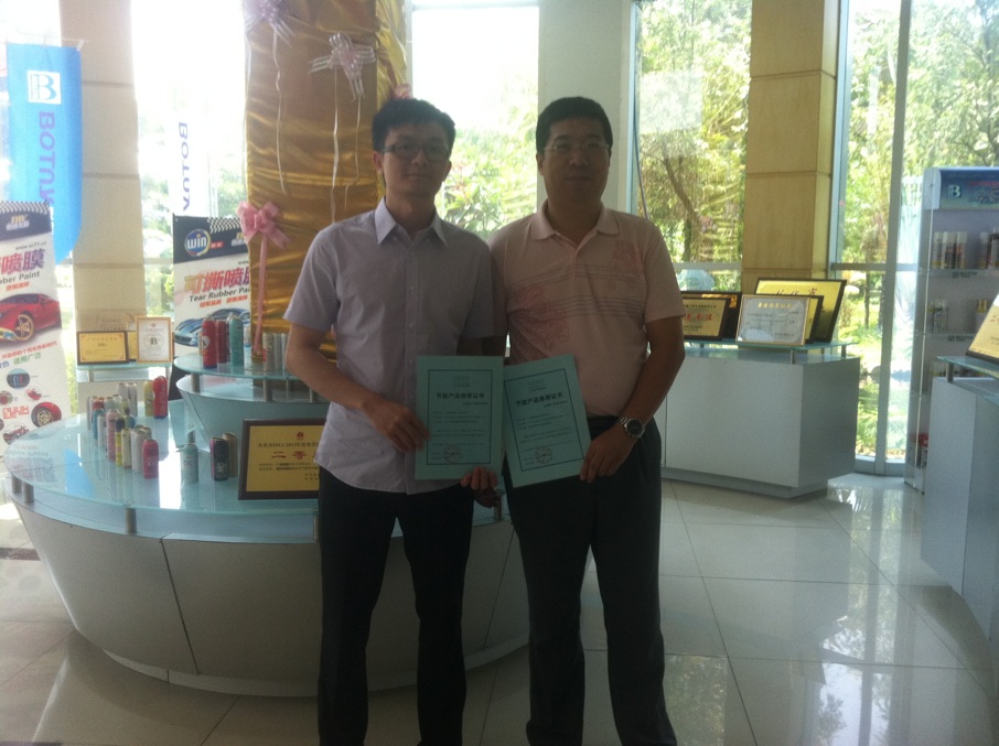 調研期間,王總監首先了解了我司三款節能隔熱降溫涂料的發展狀況及未來的推廣方向,王總監不僅對產品的技術與性能給予了高度的肯定,并就產品的發展指出了新的思路和方向。王總監還熱情地講解了政府未來對節能改造的方向與新的法律法規,F場省節能協會王總監親自授予我司兩款產品—BOTNY水性高彈性反射隔熱涂料,BOTNY工業廠房防銹隔熱涂料《廣東省節能協會節能產品推薦證書》。