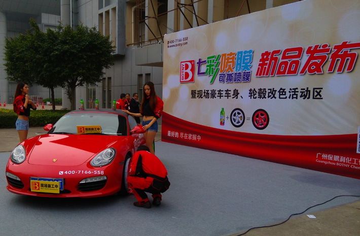 廣州保賜利作為本屆展會主場力邀的知名品牌,不僅高端亮相,更在本屆展會同期活動——漂移競技大賽活動區域,現場發布保賜利2013年新品——七彩噴膜(可撕噴膜)。