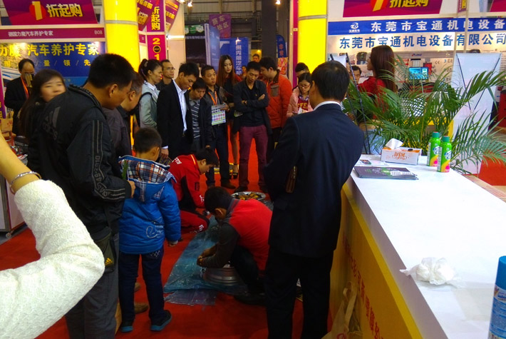 展位現場,保賜利展臺設計呈現出高端、大氣,并配有超大屏幕的LED顯示屏,成為眾多觀覽觀眾首選,眾多觀眾更在現場活動中,踴躍參與,現場熱購更一度達到狂熱,人氣爆棚。在漂移競技大賽區域,保賜利現場發布的七彩噴膜(可撕噴膜),不僅吸收超高人氣,現場更有美女走秀,七彩噴膜現場對法拉利等世界名車進行輪轂改色施工演示。